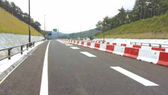 従来型と同様に中空部にコンクリートを充填することで車両逸脱防止機能が向上し、高速道路・一般道の終点部の車線規則に適した防護柵となります。