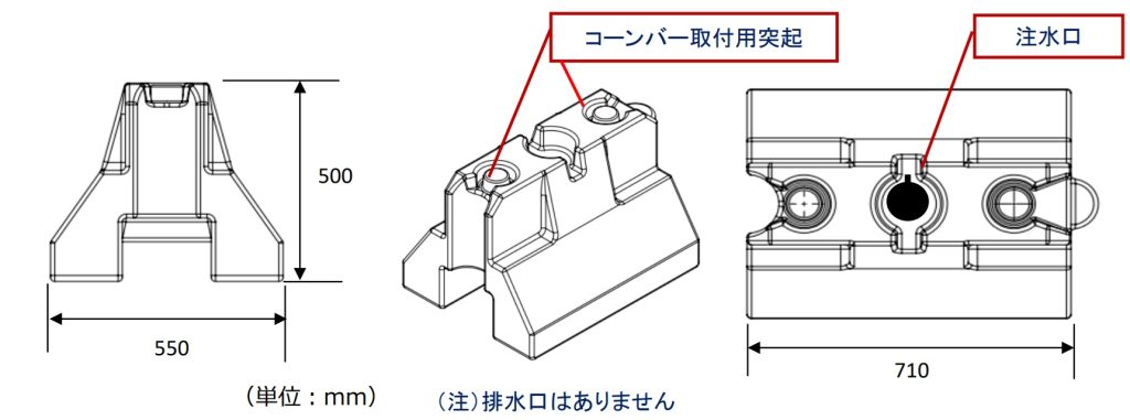 カディミニはポリエチレン製で水を直接充填する簡易バリアです。